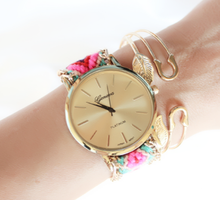 Montre femme bracelet bresilien. Boitier avec dos en acier inoxydable. Largeur cadran : 32 mm. Mouvement Quartz haute fiabilité. Mouvement à trois aiguilles. Adaptable à tous les poignets. Montres tendance.