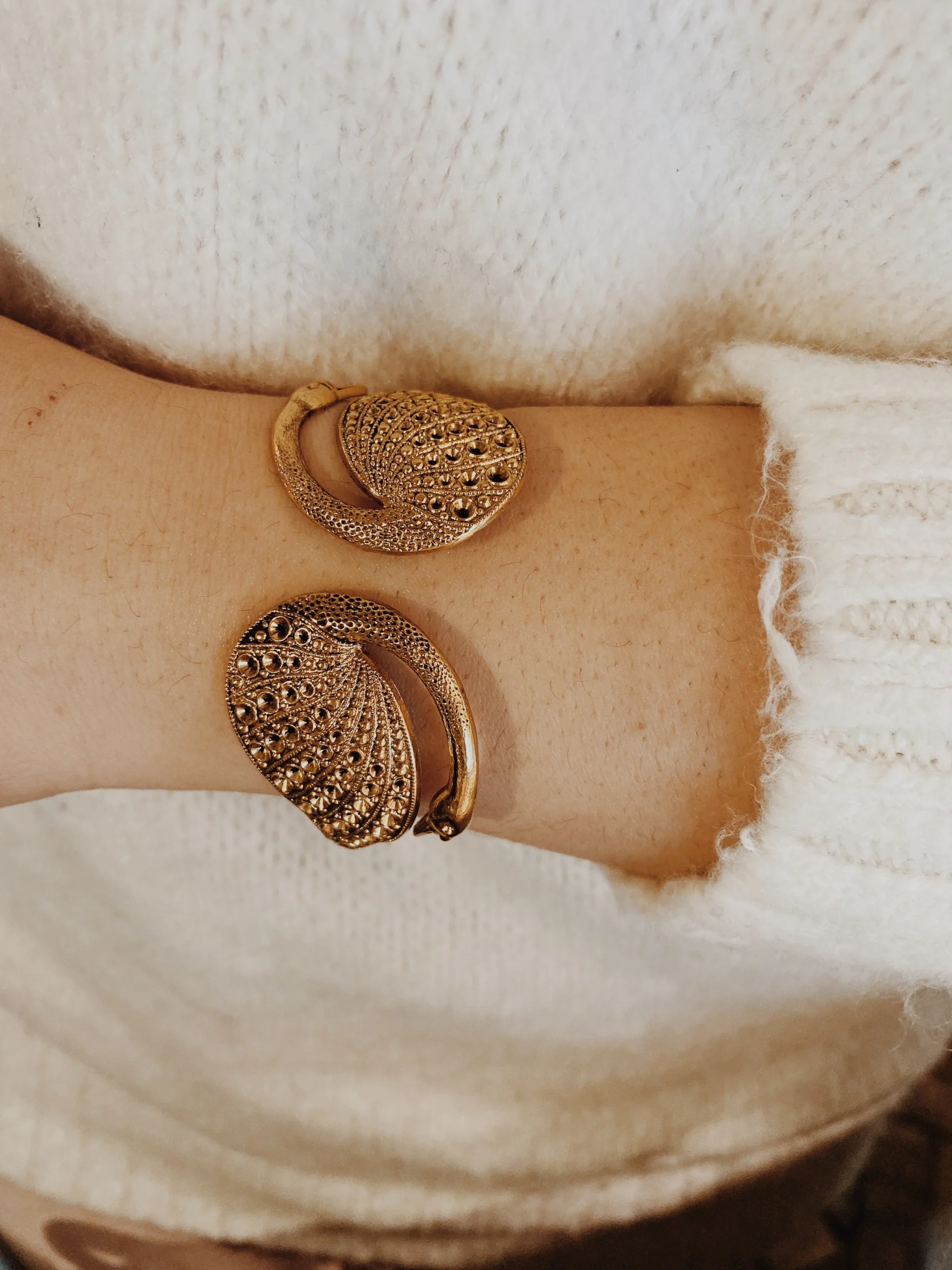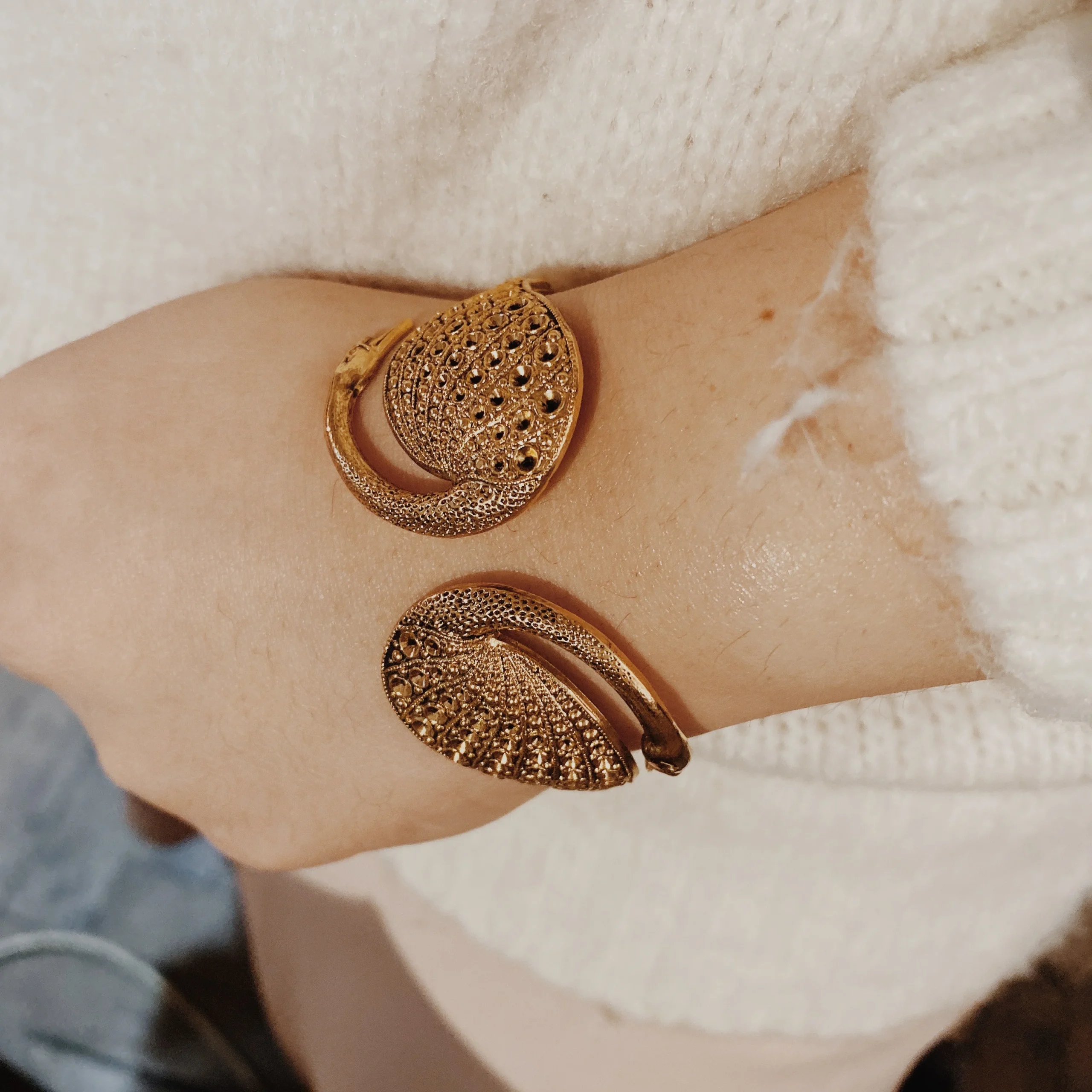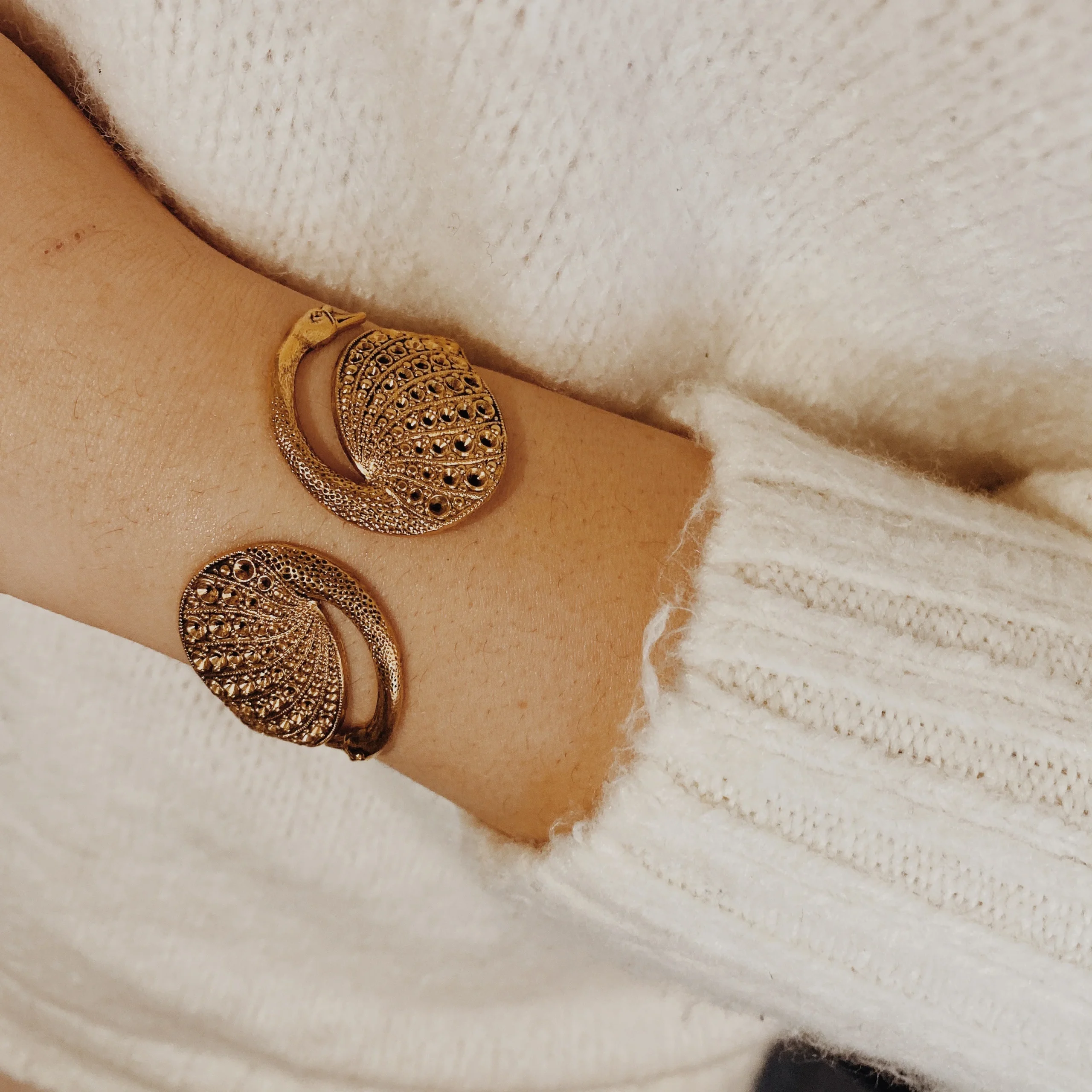 BRACELET DOUBLE SWAN DORE – Bracelet doré or fin, patiné – Bracelet ajustable – Sans Nickel – Livré avec une pochette tissée main