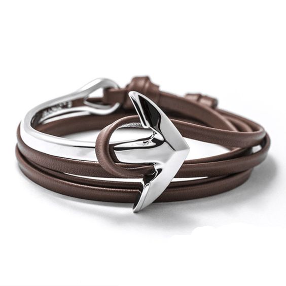 Bracelet femme ancre argent marron