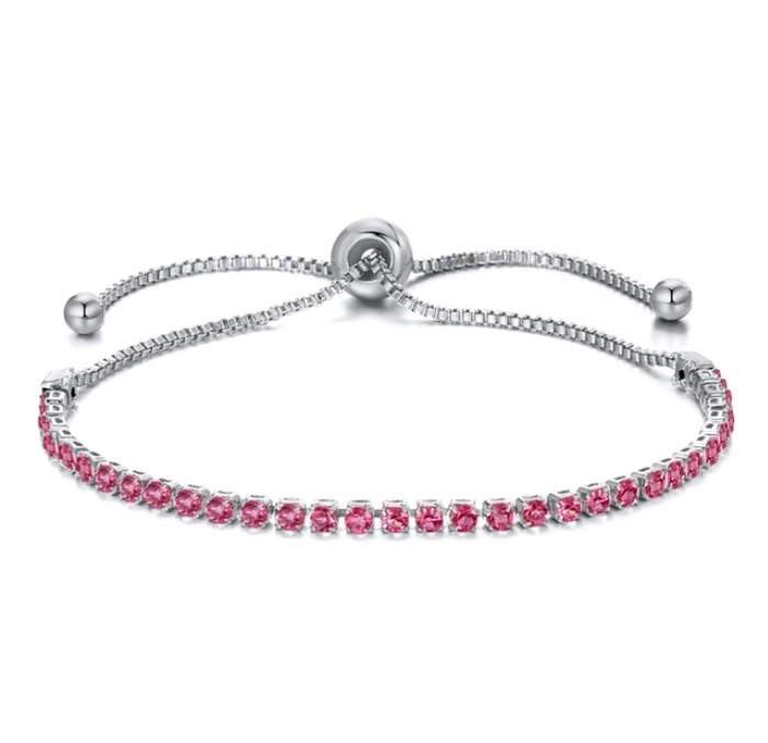 Bracelet tendance en Oxyde de zirconium. Ce bracelet plaqué argent est le cadeau idéal à offrir Bracelet femme strass rose