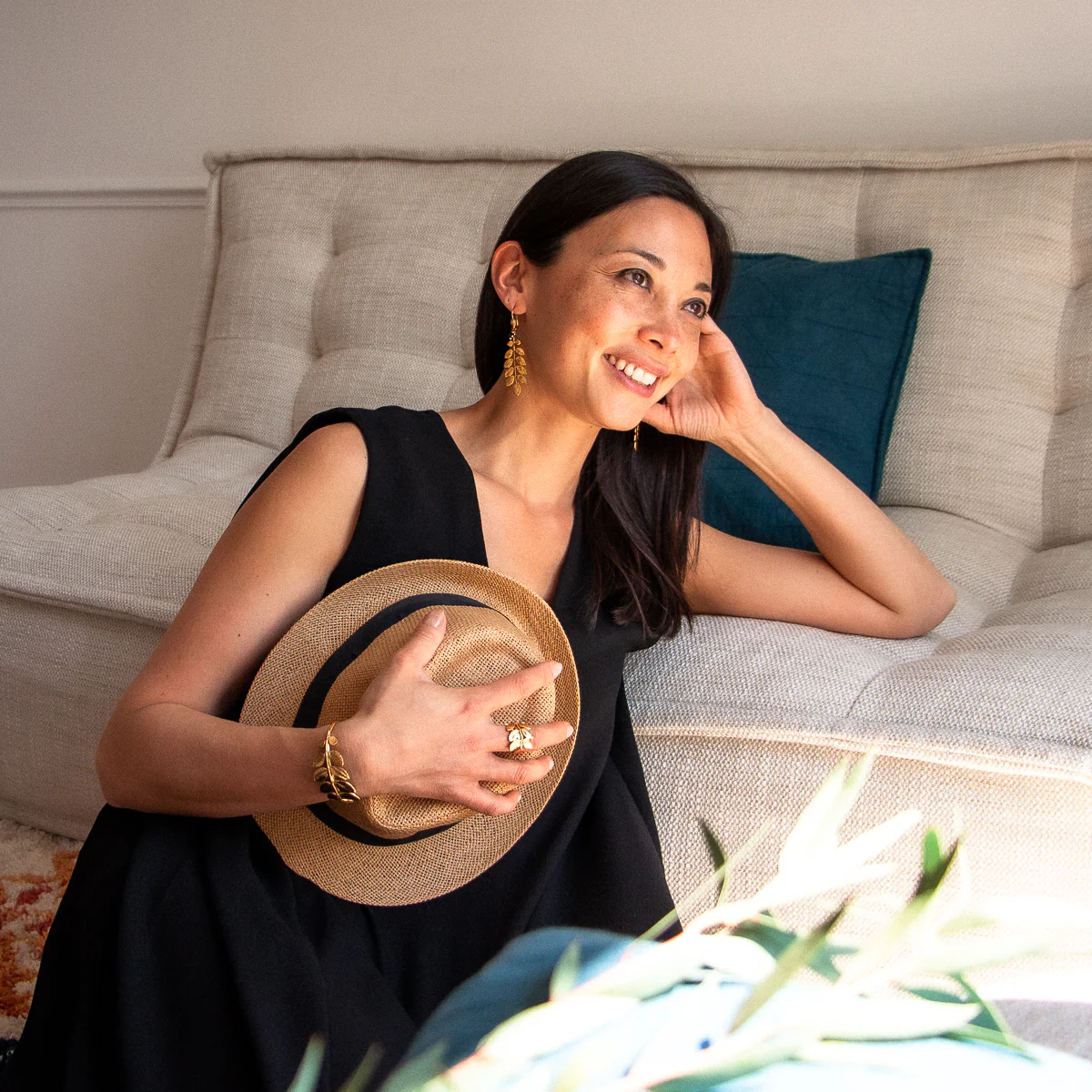 Bracelet Feuille d’Acacia Doré – Bracelet doré or fin, patiné – Bracelet ajustable – Sans Nickel – Livré avec une pochette tissée main