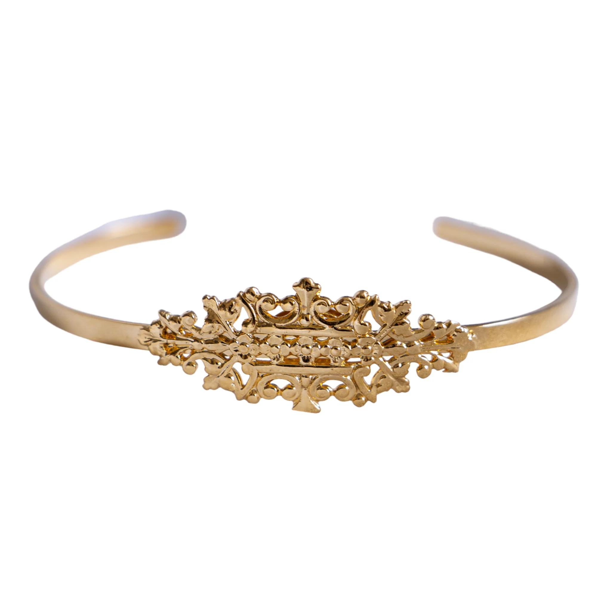 Bracelet Jonc Little Baroque – Bracelet doré or fin, patiné – Bracelet ajustable – Sans Nickel – Livré avec une pochette tissée main
