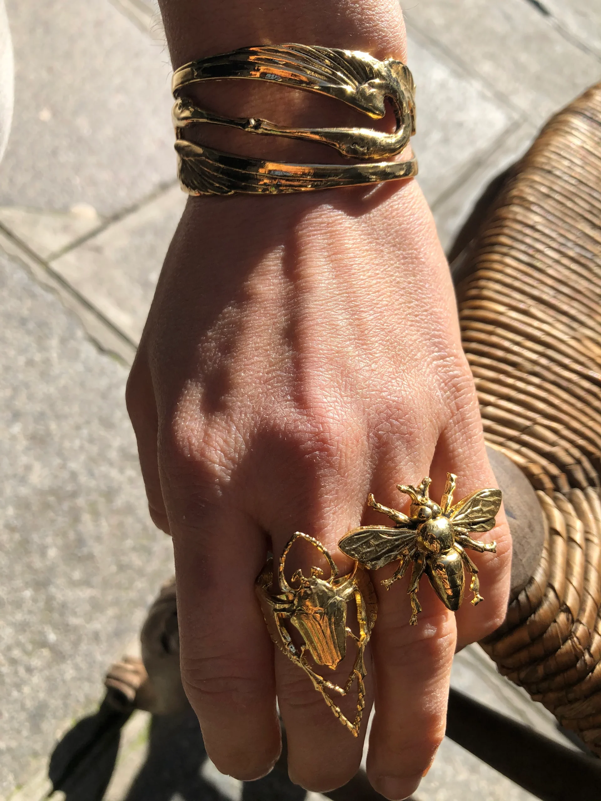 – Bracelet doré or fin, patiné – Bracelet ajustable – Sans Nickel – Livré avec une pochette tissée main