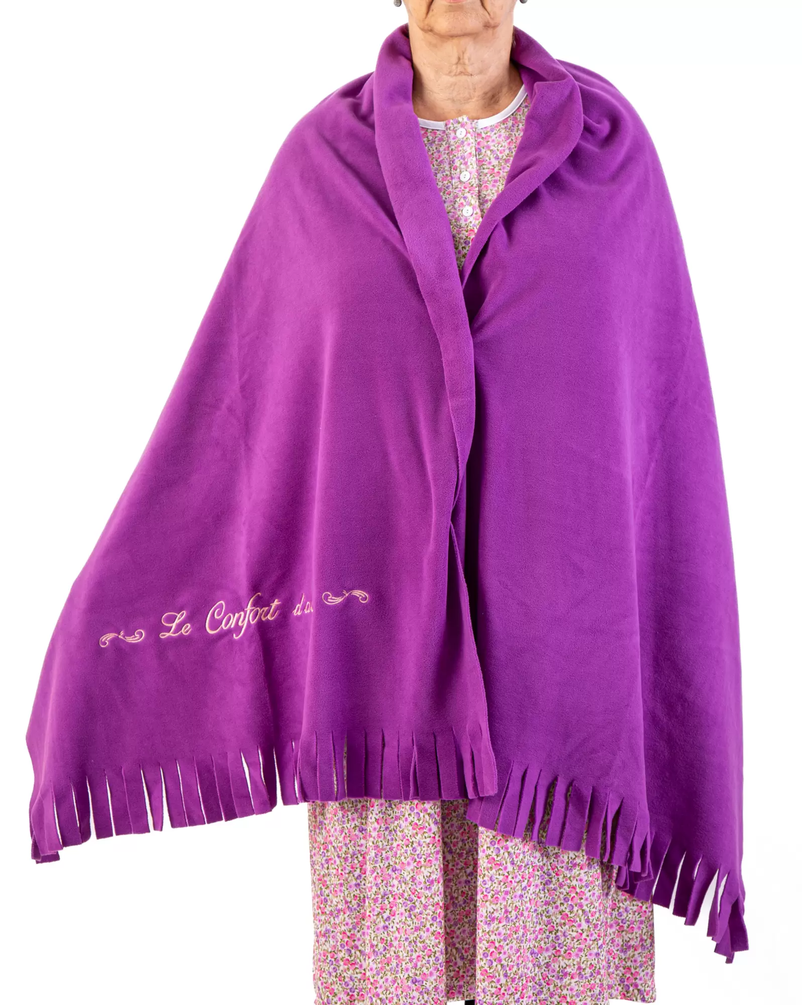 Notre châle en polaire est très doux, et est la pièce parfaite pour garder une personne confortable et au chaud. Il est offert en marine, rose et bleu.