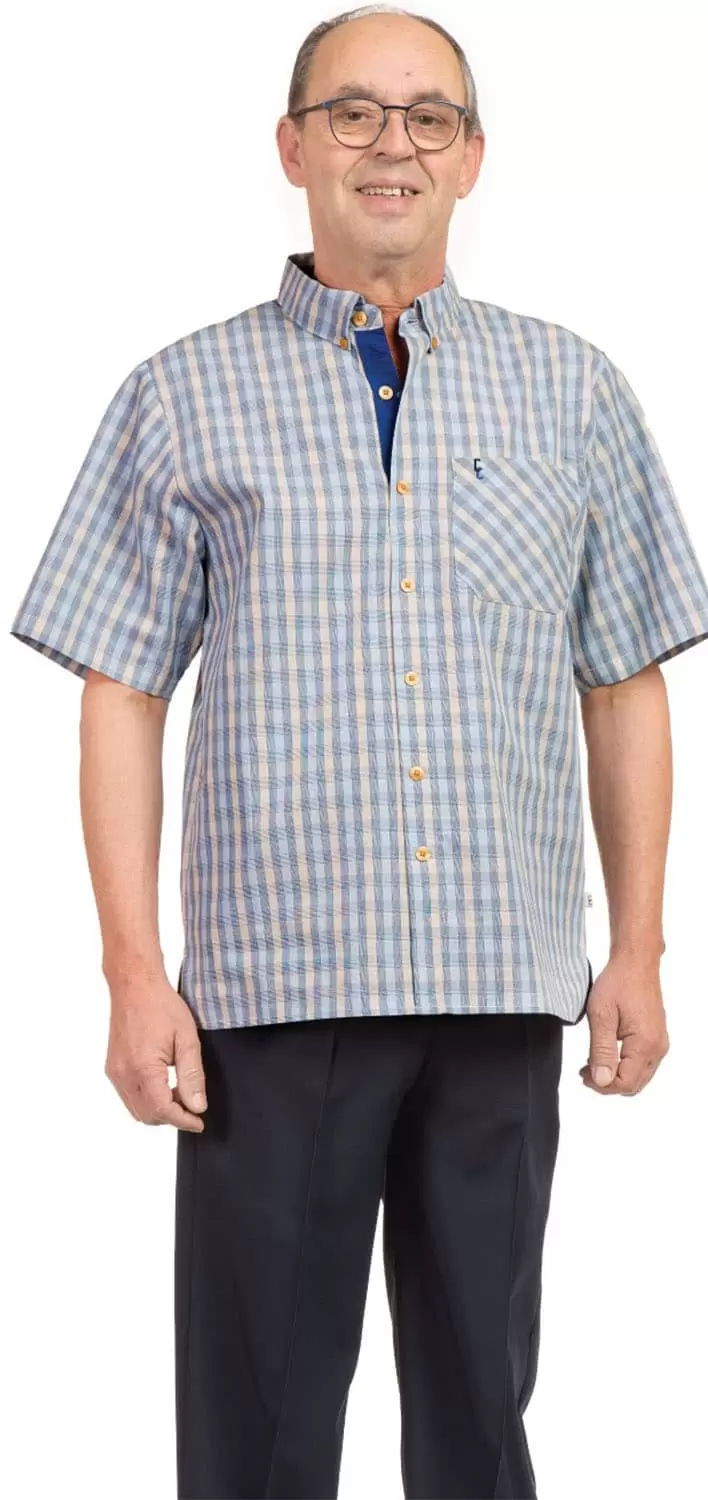 Chemise Adaptée 1-5850 -Carreaux Bleue/Jaune /Gr 2 Seulement/