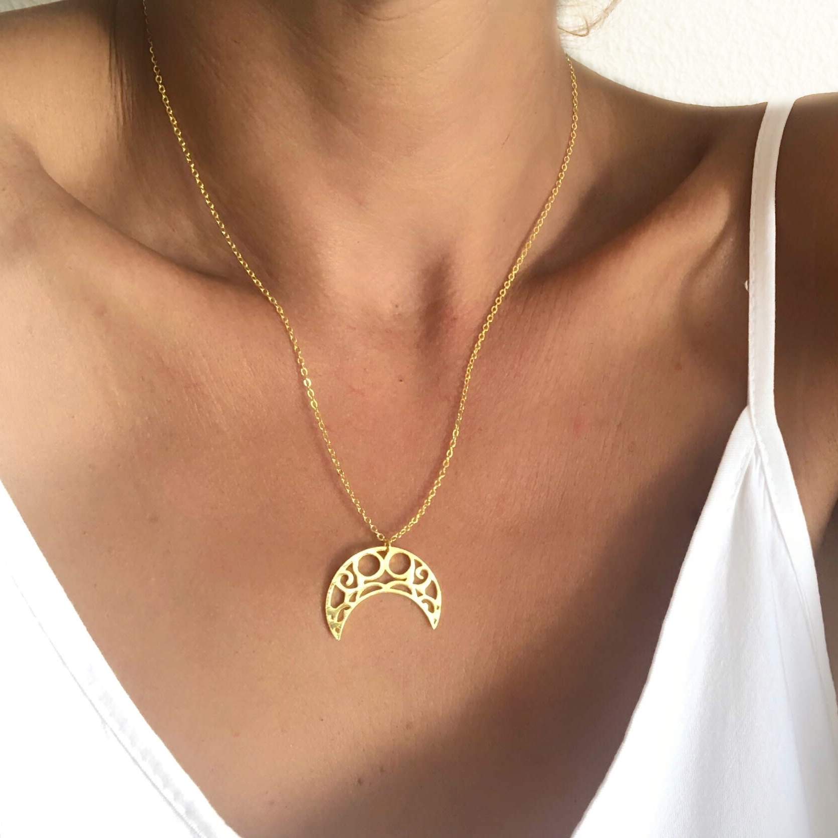 Collier en plaqué or avec pendentif croissant de lune.
