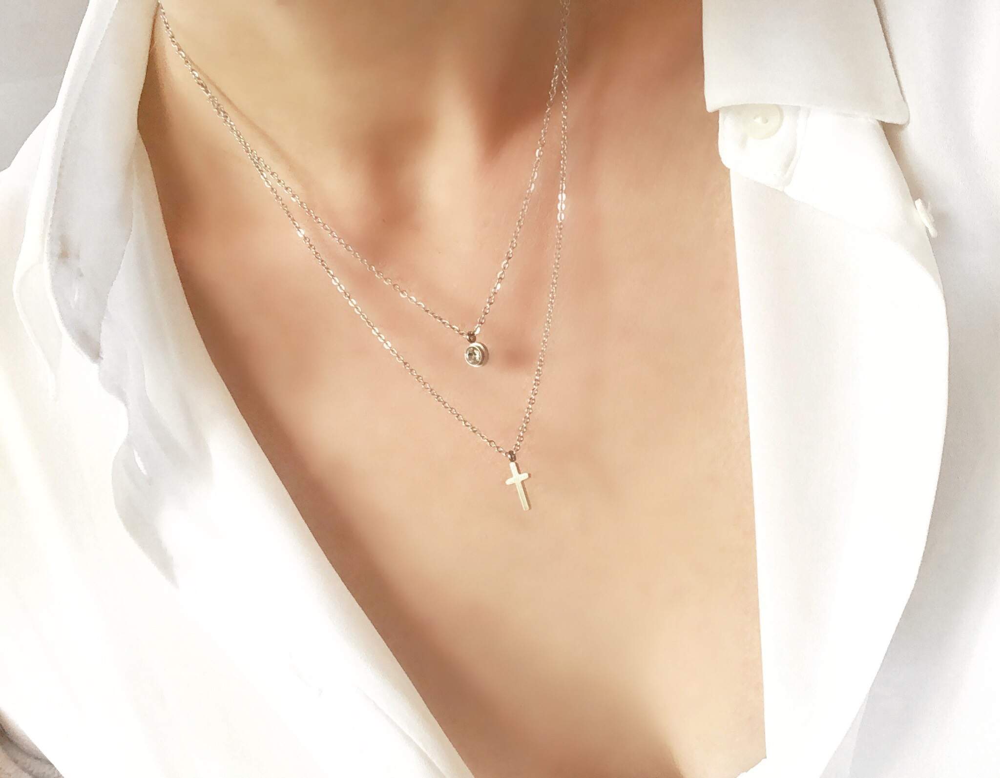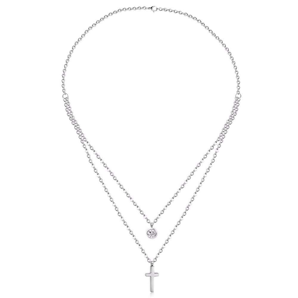 collier croix en métal plaqué argent. Ce collier multirang avec oxyde de zirconium se mariera parfaitement avec vos tenues, aussi bien avec les looks « casual » que les looks de soirées. Craquez pour ce collier porte-bonheur. Ce collier multirang en acier plaqué argent est un incontournable de la collection 2019. Chaine: 40-45 cm Nous vous proposons un choix varié de bijoux porte-bonheur en plaqué or ou plaqué argent. Emballage cadeau offert! Craquez pour ces bijoux porte bonheur en pierres Swarovski à petits prix. Collier tendance 2019