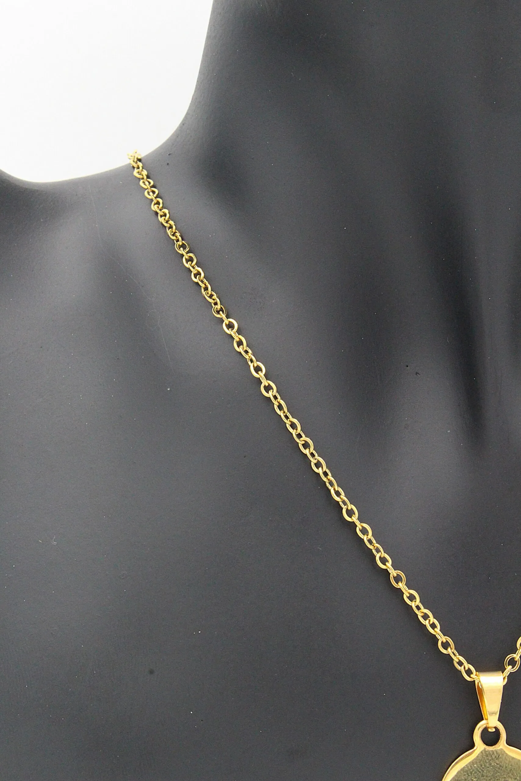 Matière : Acier inoxydable 304 Couleur : Dorée/Argent Taille : 50cm + 5cm de rallonge Diamètre du médaillon : 13mm