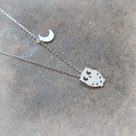 Collier hiboux argenté femme. Collier plaqué argent et pendentif hiboux plaqué argent. Réglable: 45/50cm Pendentif: 1,7cm Plaqué argent Chaque bijou est vendu dans sa pochette en tissu personnalisée