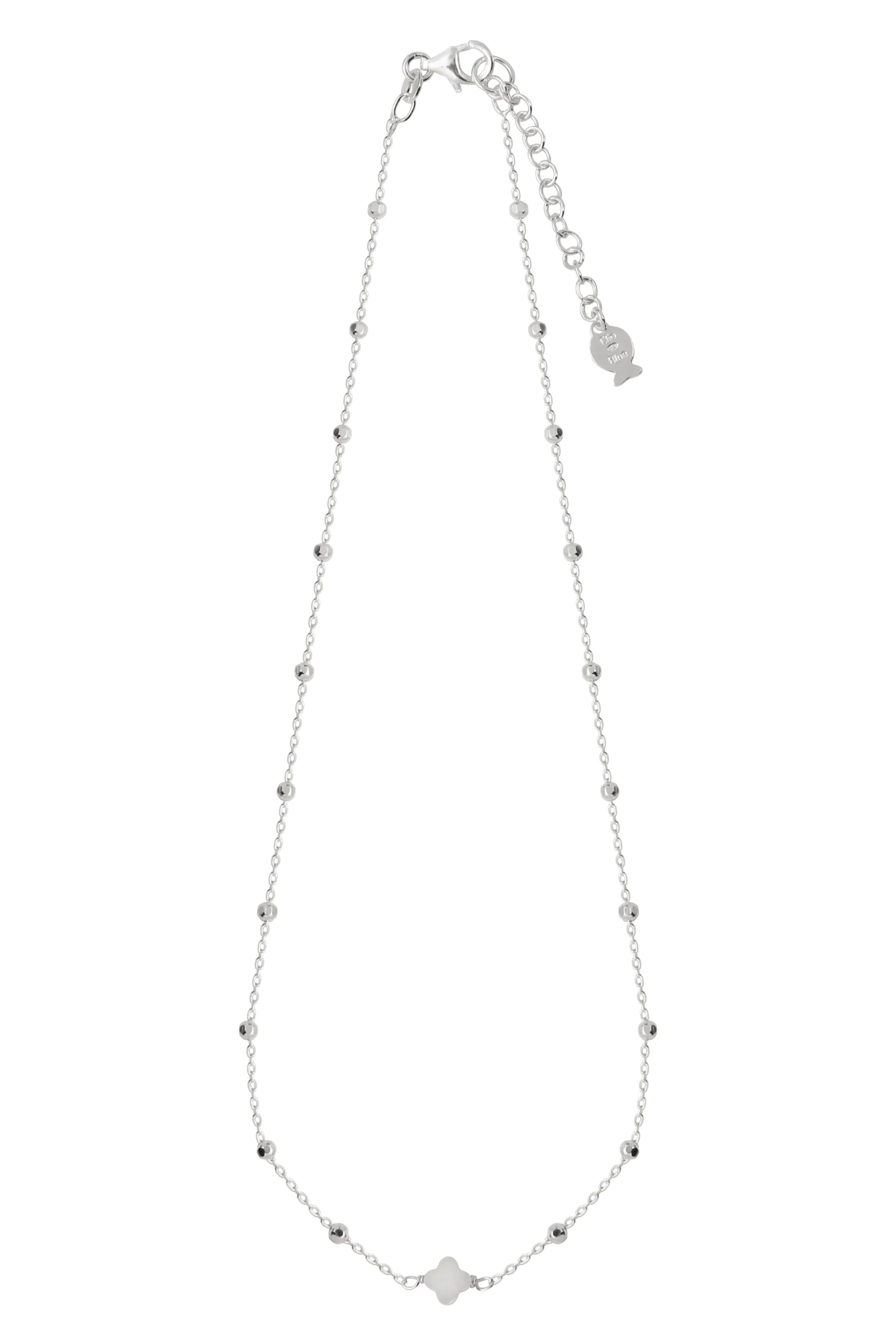 Collier Jour de Chance, un bijou élégant de 3.5gr en Argent 925‰, qui allie finesse et modernité. Ce collier se distingue par sa chaîne Forçat Alternée ornée de perles facettées, offrant une longueur de 40cm ajustable à 45cm.