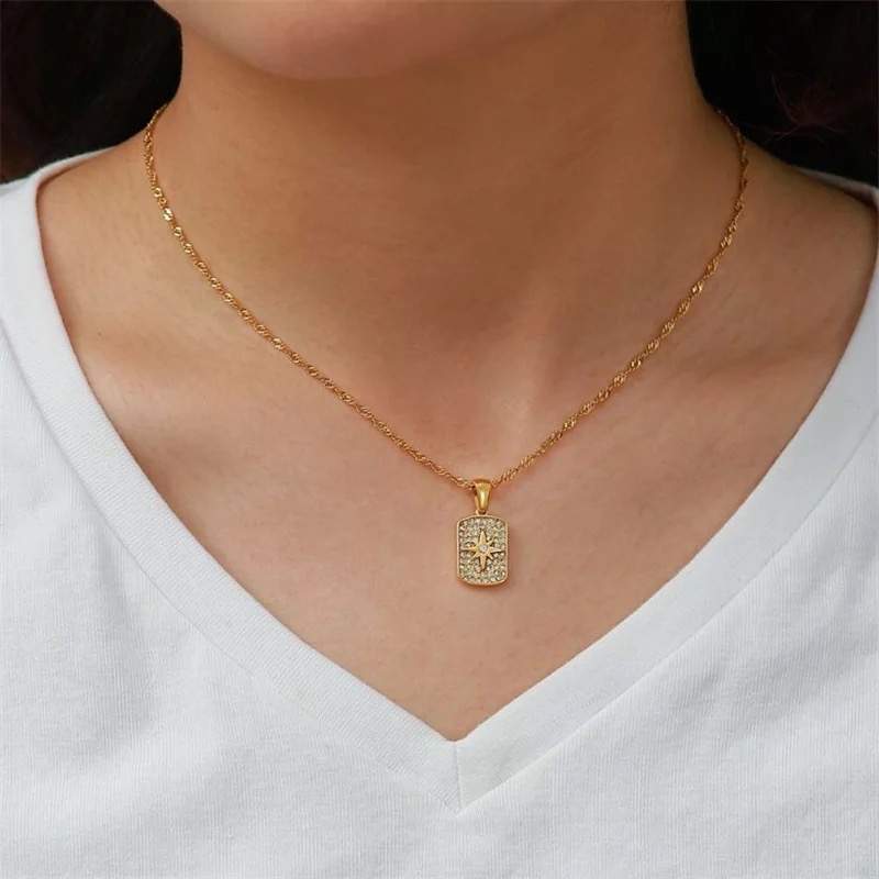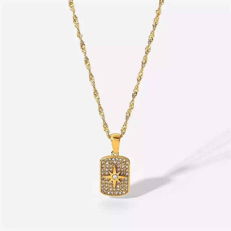Collier pendentif étoile strass. Collier avec médaille étoile strass en acier plaqué or. Longueur du collier : 40 cm + 3 cm de chaine de réglage. Ce collier fantaisie en acier plaqué or a été conçu pour vous ! Discret mais original, ce collier créateur dispose de plusieurs atouts.