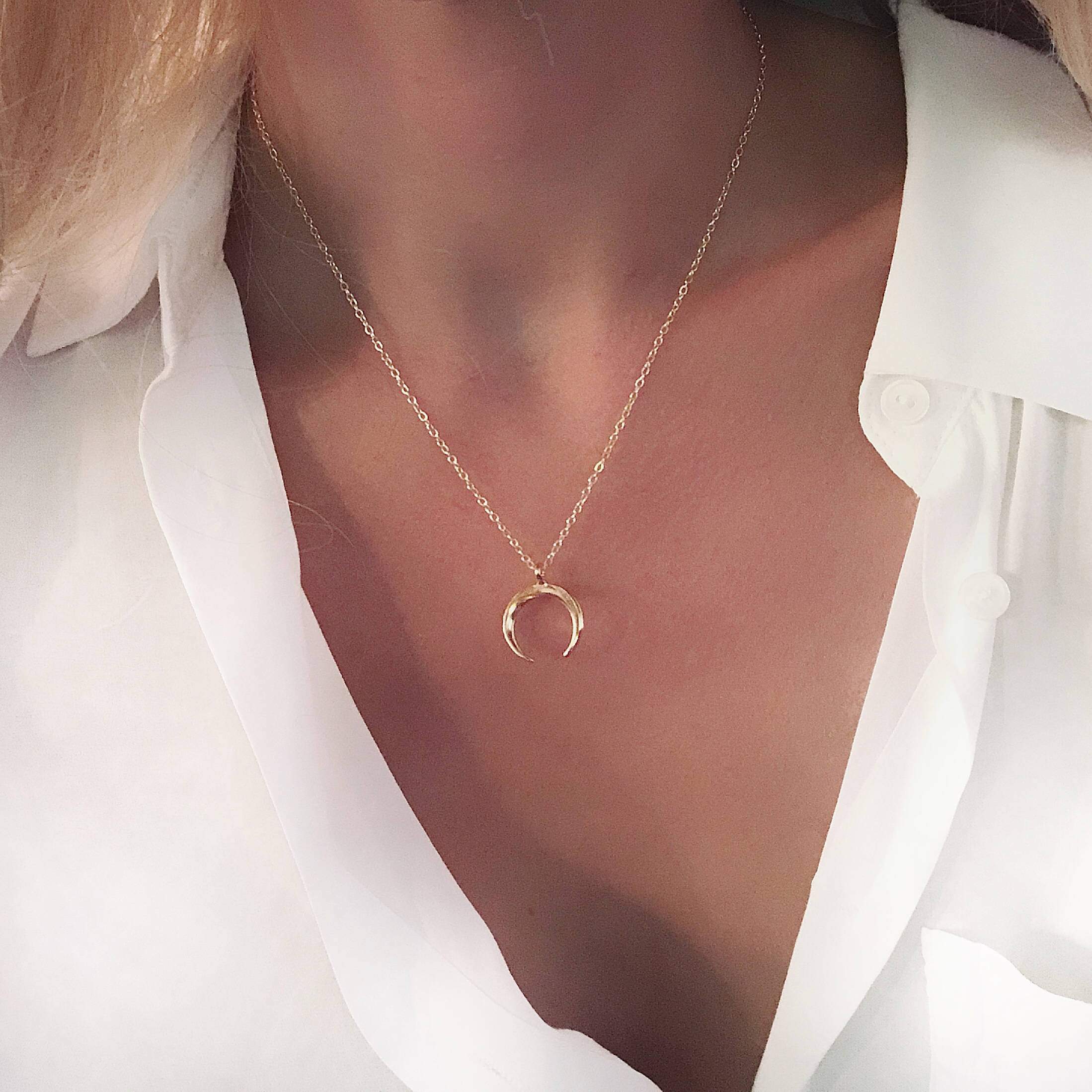 Collier tendance 2024 – corne lune or. Collier en métal plaqué or chaine: 35-40 cm Emballage cadeau offert
