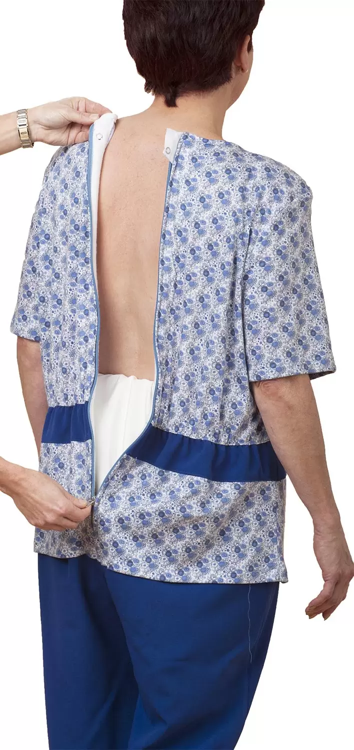 Les combinaisons de jour une pièce pour femmes sont fait en poly/coton doux et sont résistantes, confortables et sans contention. Elles assurent le respect et la dignité des personnes atteintes de la maladie d’Alzheimer, de toute autre forme de démence, ou de troubles cognitifs, en leur restreignant l’accès aux sous-vêtements d’incontinence et leur empêchant de se dévêtir. La combinaison est munie d’une longue fermeture éclair au dos se sécurisant avec un bouton à pression au haut. Elle est robuste et résistante, et permet un habillage pratique pour l’aidant et indolore pour le ou la bénéficiaire. Celle-ci est offerte en plusieurs couleurs et imprimés, et donne l’impression d’une tenue de jour régulière.