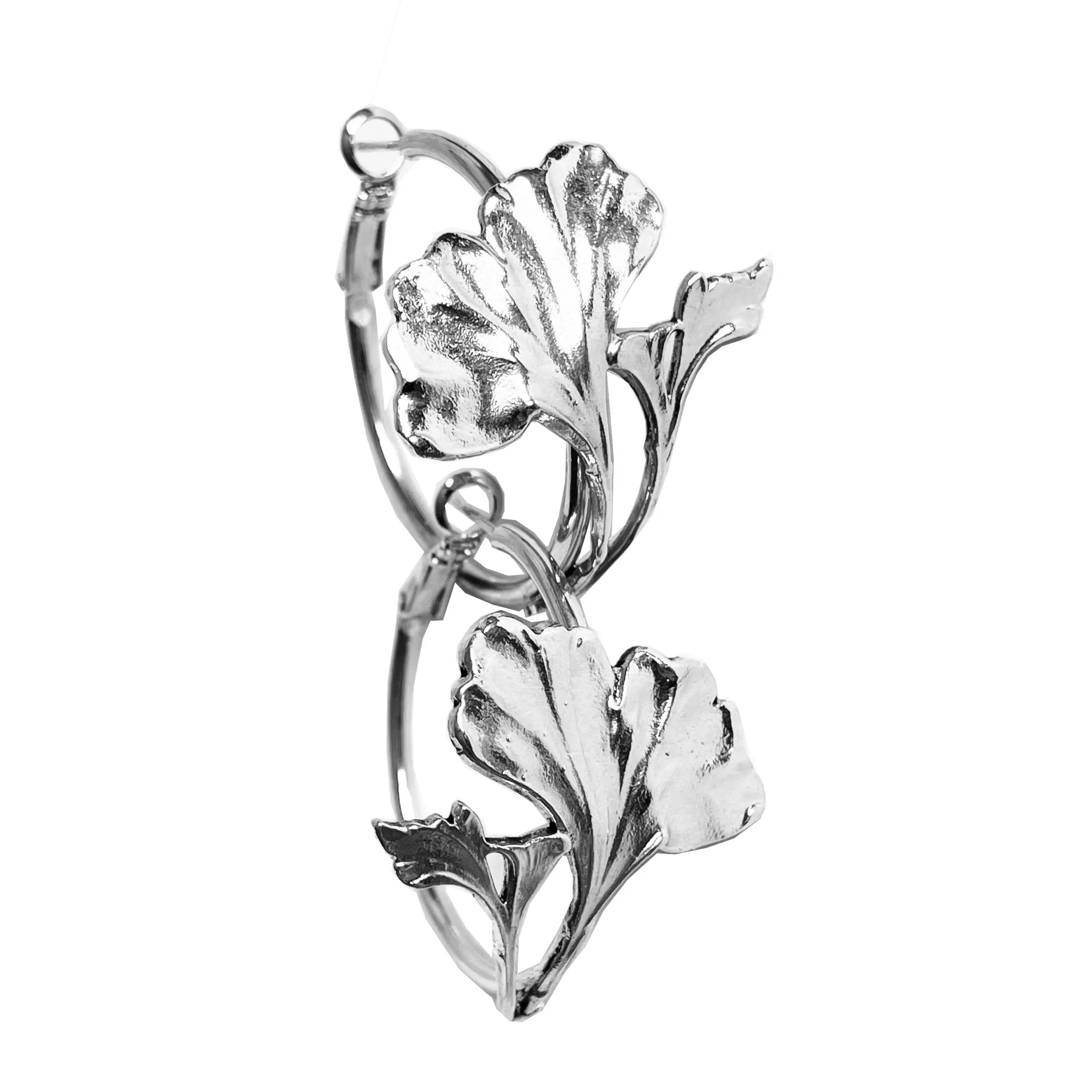 Boucles d’oreilles créole Ginkgo argentées qui dansent avec le vent. Elles murmurent la promesse du renouveau.