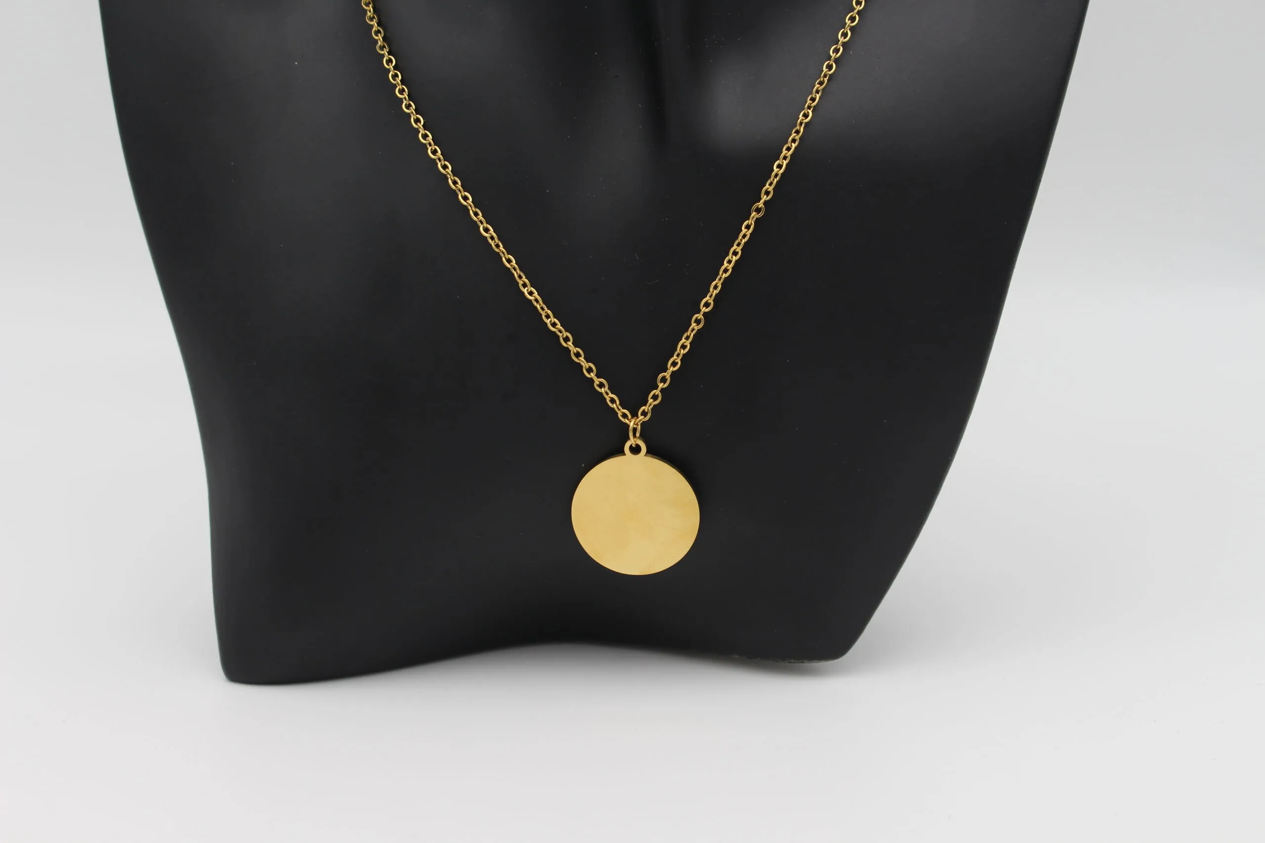 Bijoux gravure collier gros-médaillon en acier inoxydable 304.