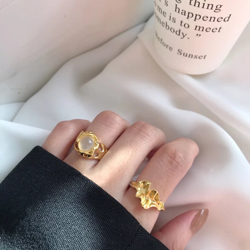 Grosse bague ajustable plaqué or Bague argent fantaisie. Bague en Argent plaqué or. Bague ouverte avec pierre. Bague réglable. Emballage cadeau offert!