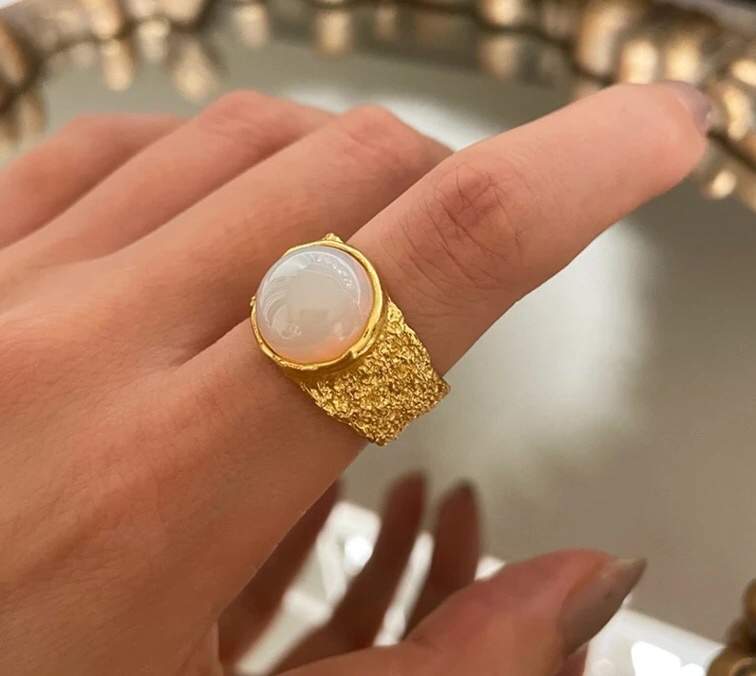 Grosse bague avec pierre plaqué or. Bague argent fantaisie. Bague en Argent plaqué or. Bague ouverte avec pierre. Bague réglable. Emballage cadeau offert!
