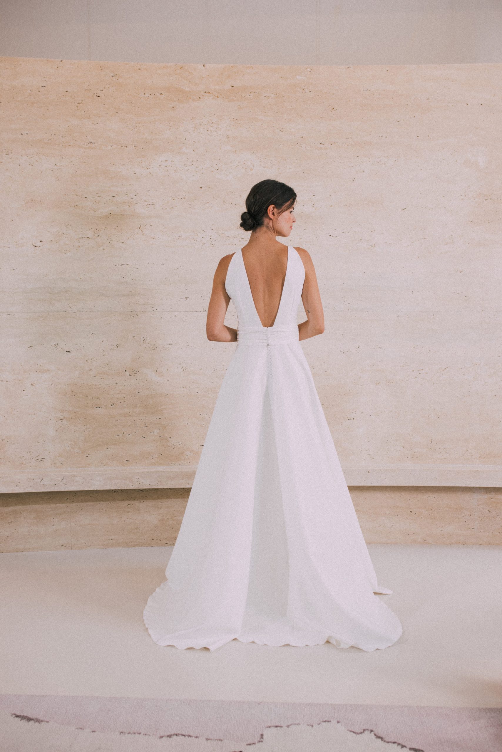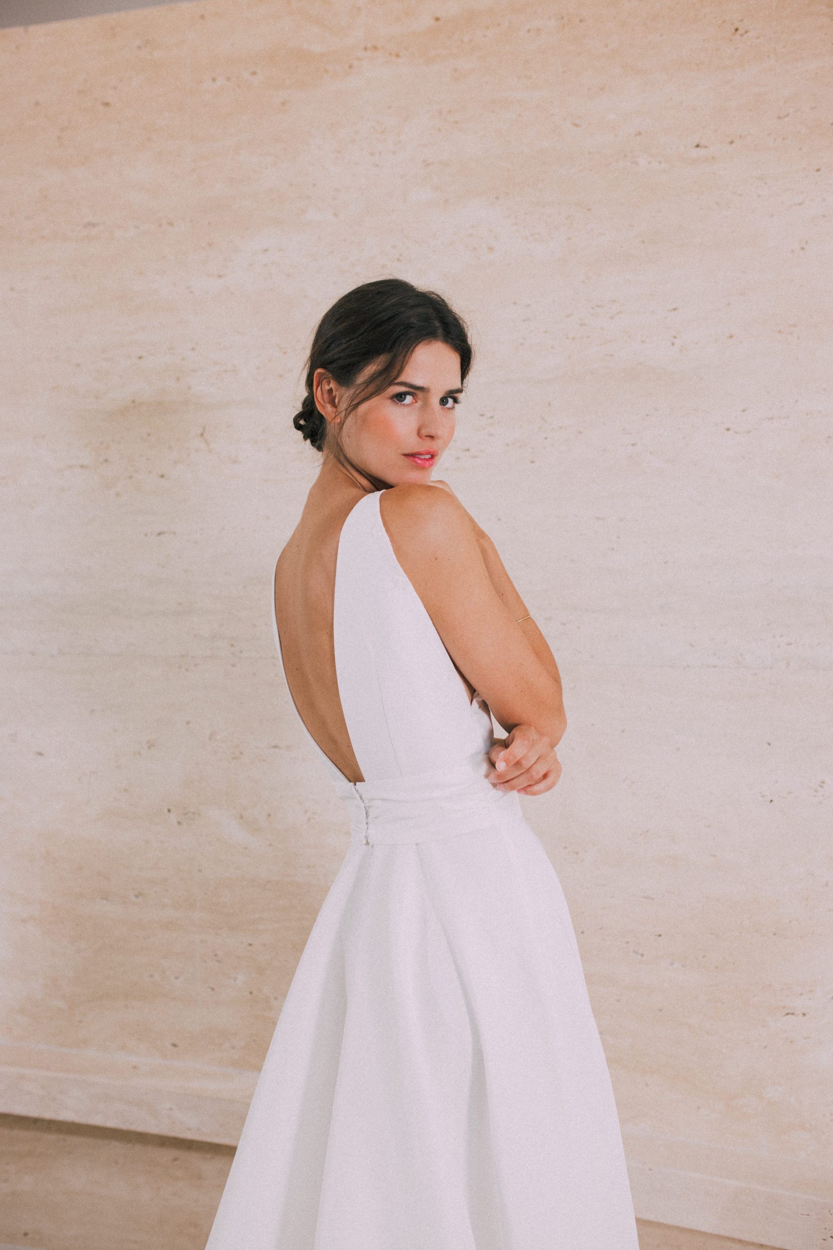 Robe en satin duchesse, sans manche