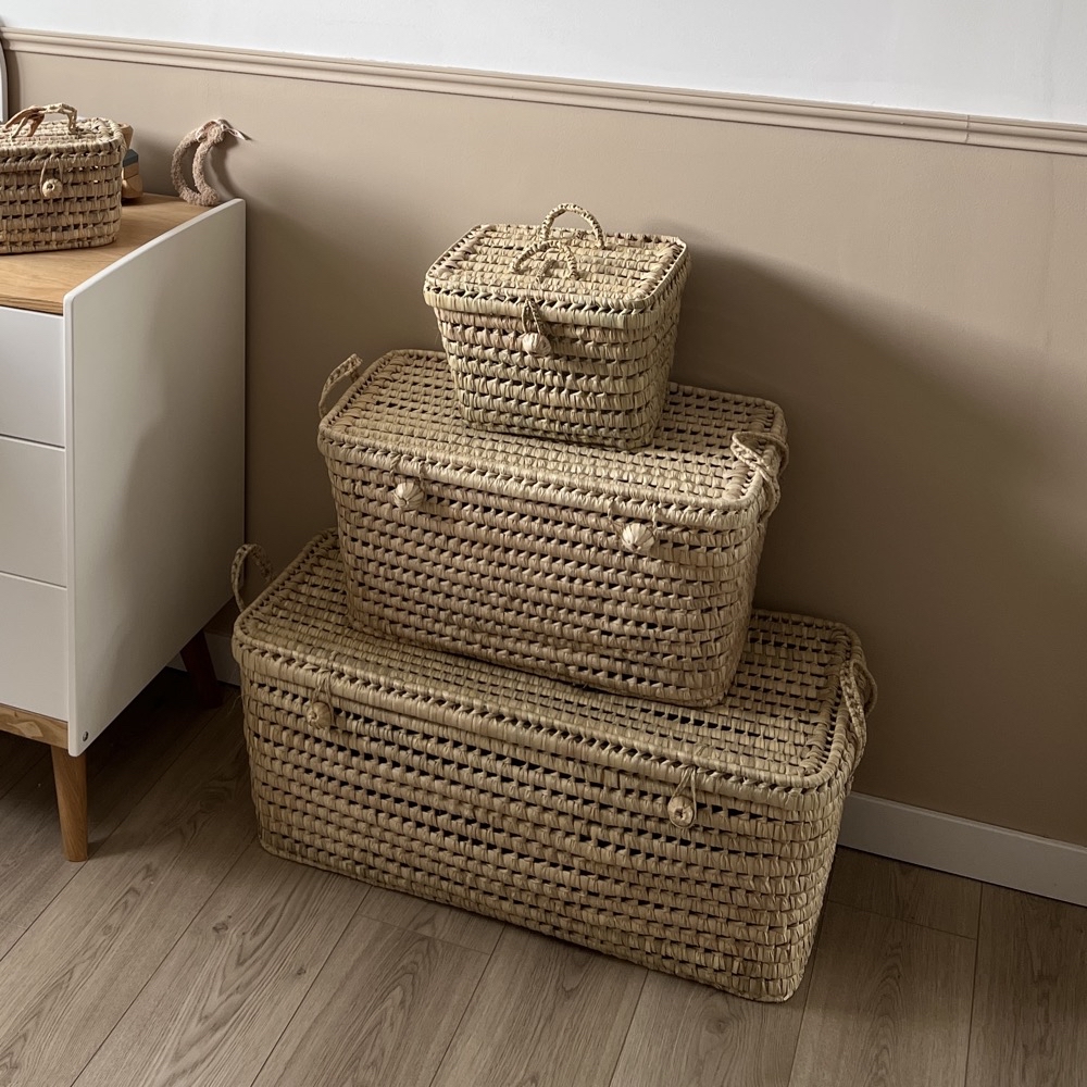 Grande malle de rangement en feuille de palmier. Très pratique pour ranger les jouets de bébé… Et pour apporter une touche de naturel voir bohème chic à la chambre. Taille = 62 cm de Longueur, 34 cm de largeur et 32 cm de hauteur