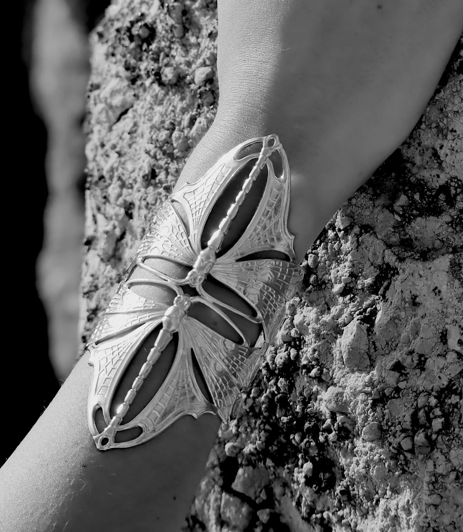 Glissant autour du poignet comme une caresse, ce bracelet manchette double libellule symbolise l’équilibre entre mouvement et silence. La libellule y déploie ses ailes comme un signe de passage — de l’ombre vers la lumière.