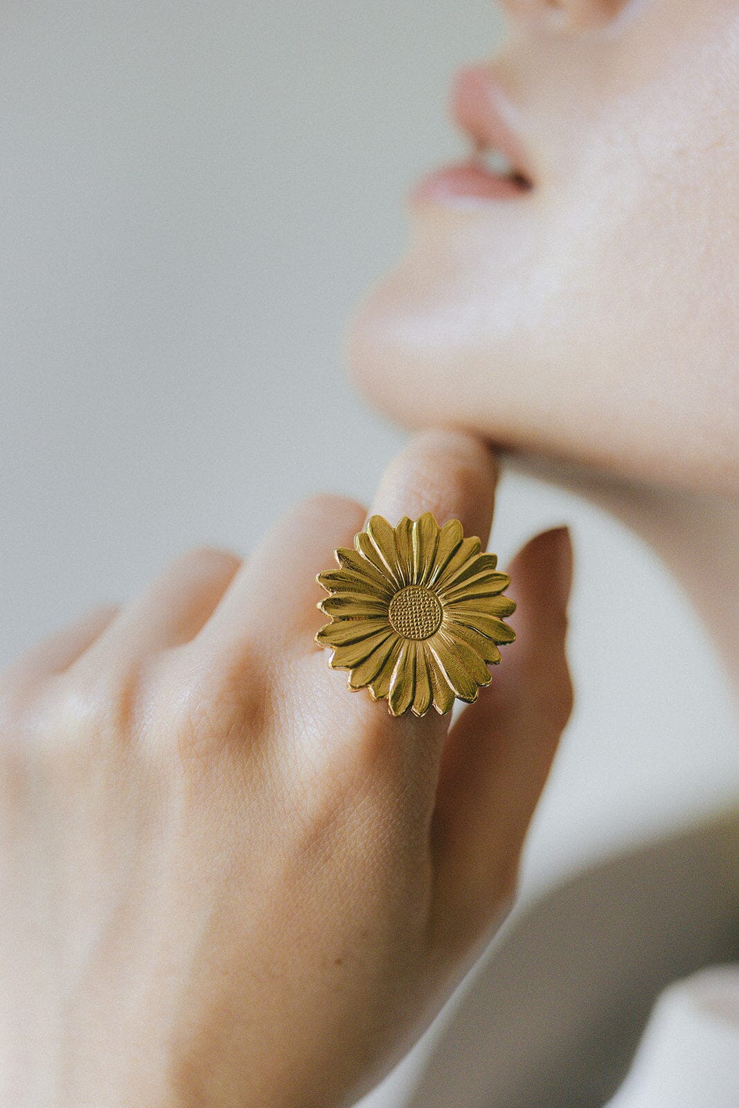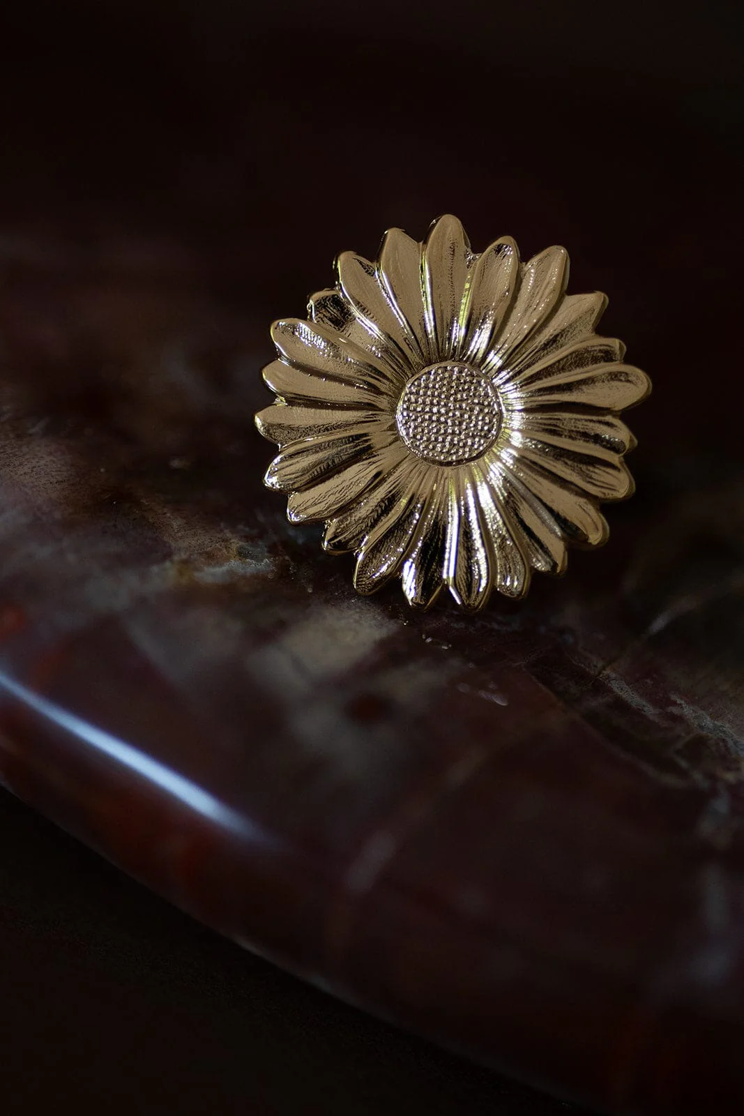 Bague fleur solaire oversize ajustable en laiton doré à l’or fin