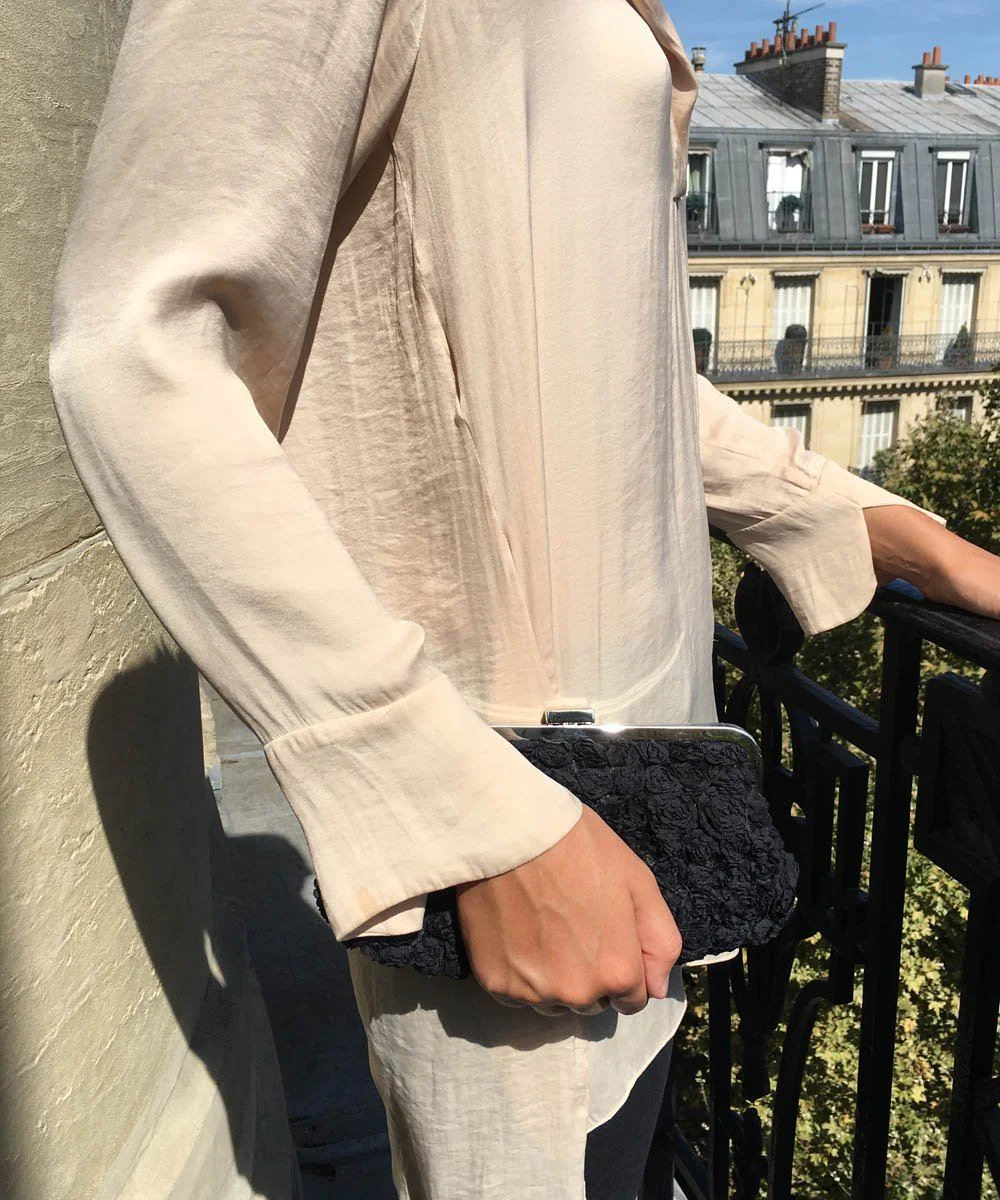 Pochette soir noire Petites Roses