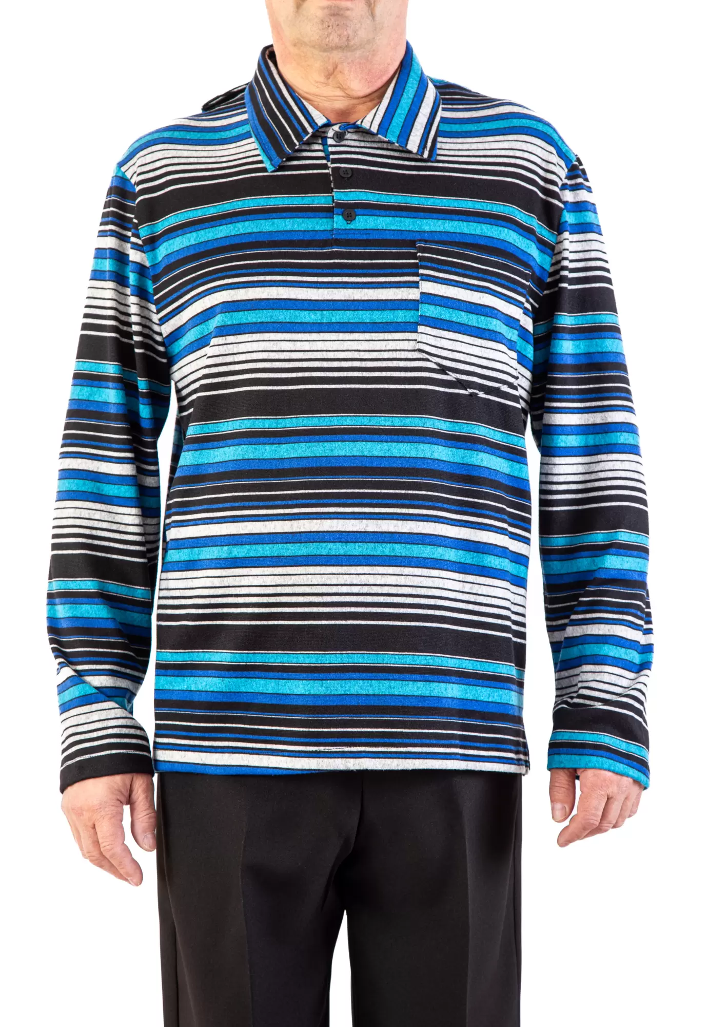 Polo Adapté à Manches Longues Style 2-6189 – Rayé Bleu