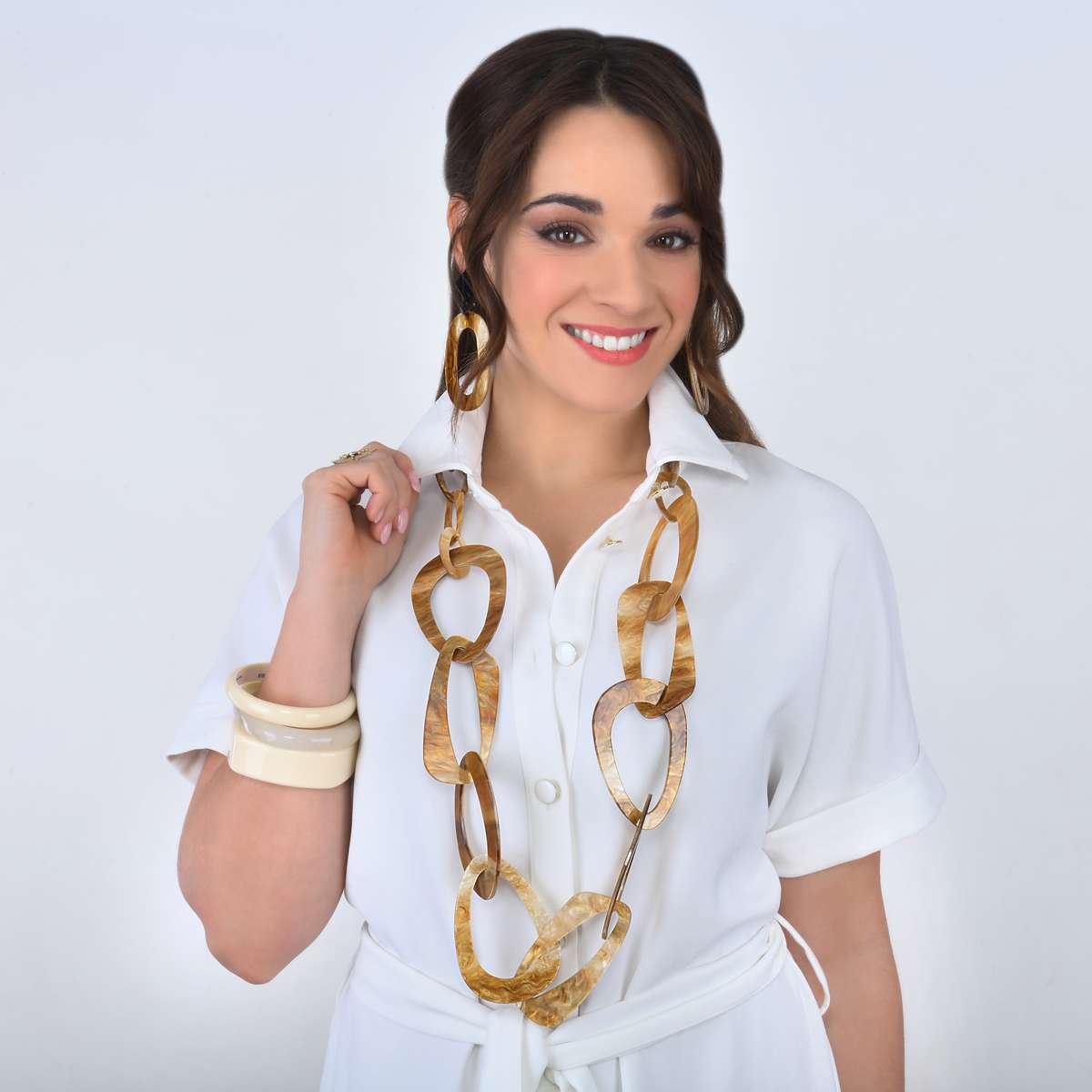 Le sautoir Seventies Florence est un bijou qui allie audace et élégance, inspiré des tendances des années 70. Fabriqué en acétate, il se distingue par sa conception unique, composée de 9 grands maillons et de 15 petits maillons asymétriques et ajourés, créant un effet de superposition captivant.