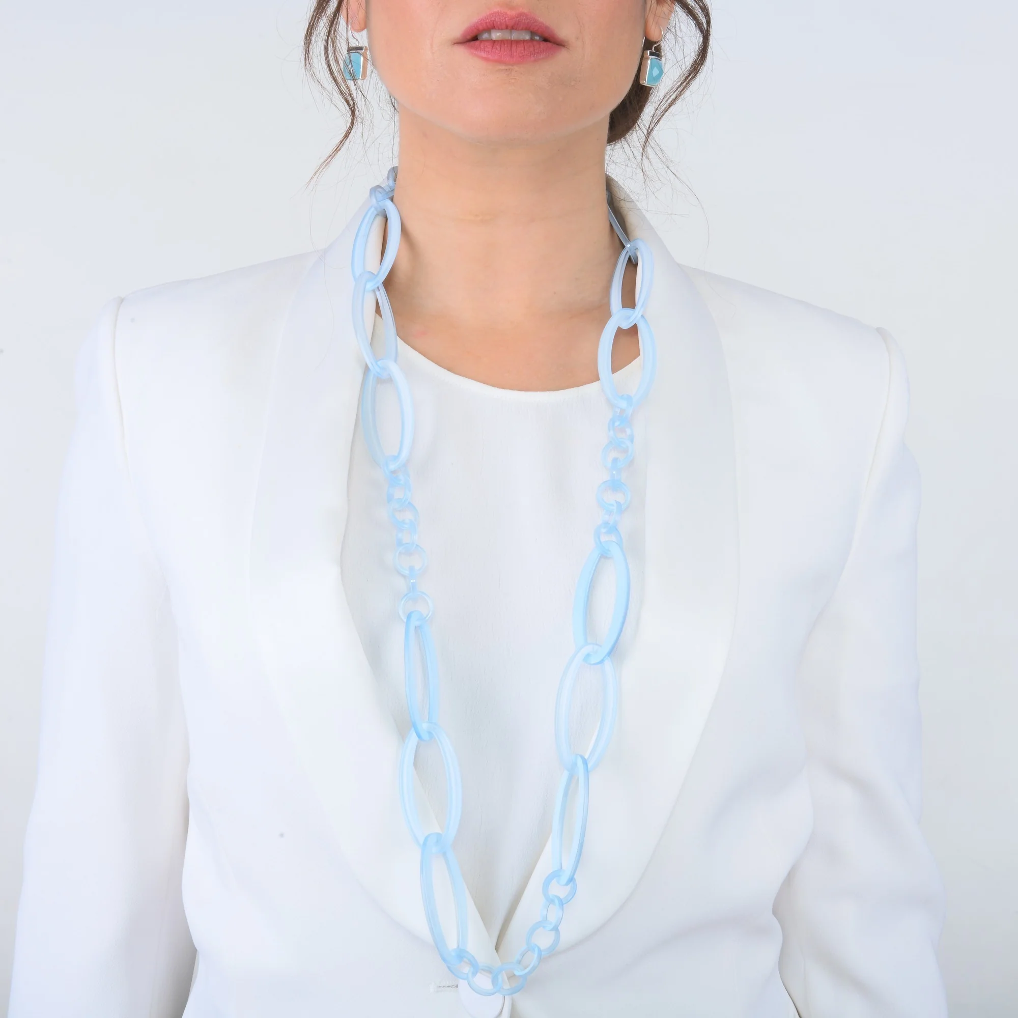 Avec sa couleur bleu clair, ce sautoir offre une allure douce et apaisante, parfaite pour l’été. Fabriqué en acétate, il se caractérise par sa légèreté et sa brillance, attirant tous les regards.