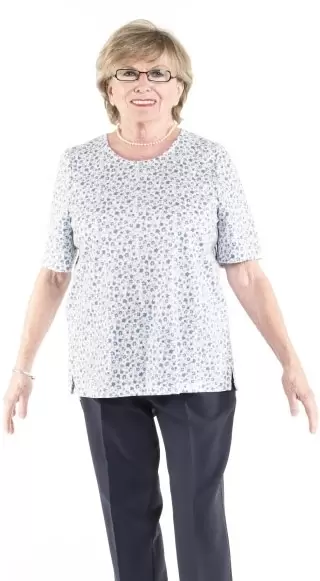 Ce t-shirt adapté à manches courtes est facile à enfiler, et se ferme au dos avec des boutons pression.